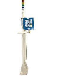 The Operator Control Stations are positioned near the conveyors for easy access and include pushbuttons for manual and automatic mode operation and an emergency stop pushbutton.  A beacon tower is also located on top of the Operator stations to alert operators of various conditions.