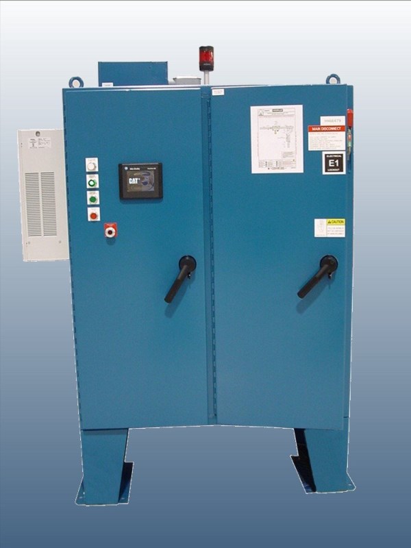 The main control panel has an air conditioner mounted outside to control the interior temperature of the enclosure.