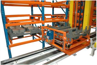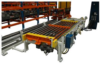 To design, build, test and install a robust system for handling, positioning and storing pallets of blank sheet stock for a roll-forming process. The system included a way to identify new pallets of blanks introduced via fork truck and track them through the process by way of a bar code reader. The pallets are placed in a storage rack and the system maintains pallet part number, storage location and sheet quantity information. The system retrieves pallets from the storage rack and positions them so that the roll-former can remove one blank sheet at a time. The system retrieved the pallets based on the blank part number and the number of blanks required for each batch run. Empty pallets are sent to the unload station conveyor for fork truck removal. Partial pallets are returned to the storage rack with updated part quantity information.